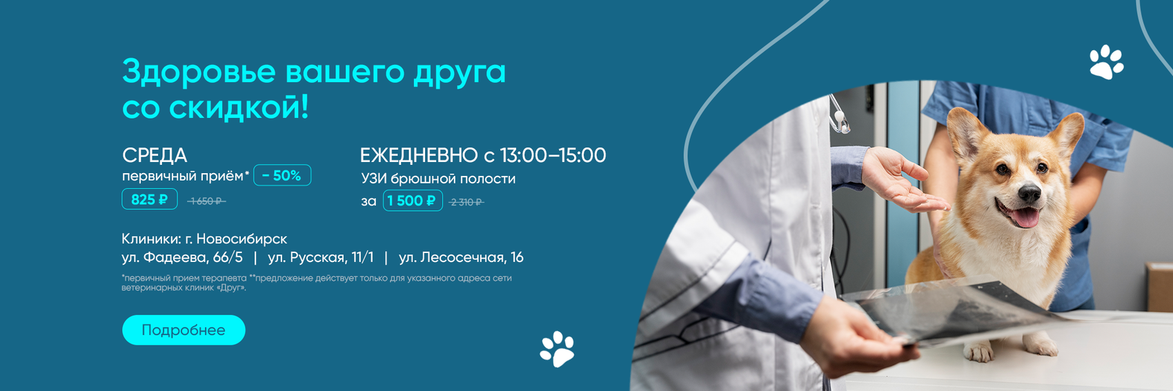 Ветеринарная клиника «Друг» сообщает о специальных предложениях для владельцев домашних животных.