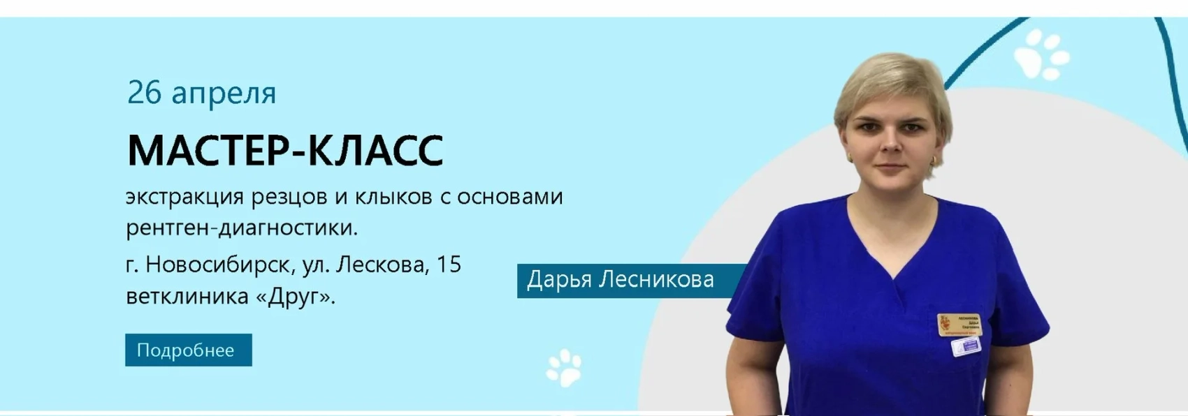 24 февраля в клинике «Друг» состоится профессиональный мастер-класс по эндоскопии для ветеринарных дерматологов с разбором клинических случаев и практической частью....