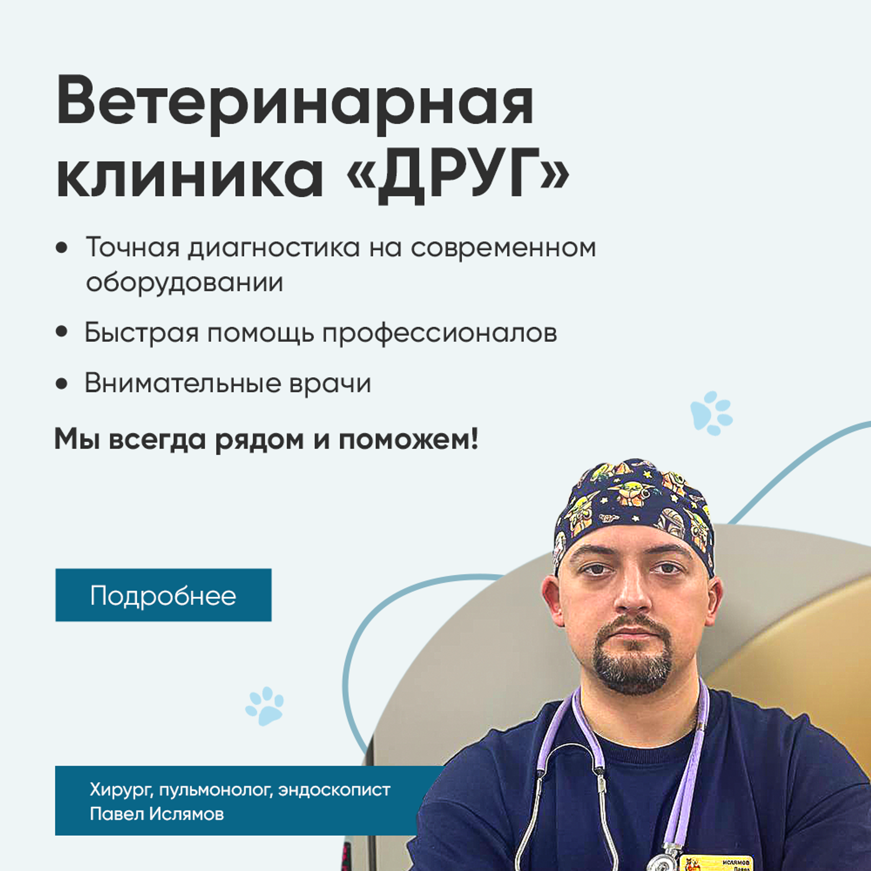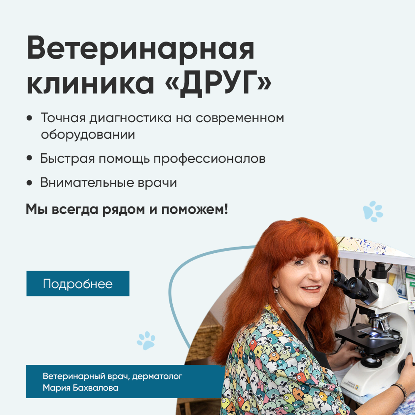«Друг» — это ветеринарная клиника у дома, где к вашему питомцу относятся, как к своему.